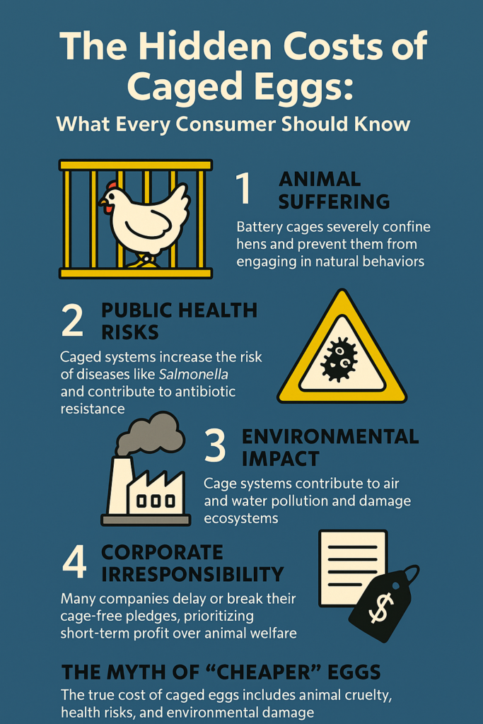 Every purchase is a vote. By rejecting the hidden costs of caged eggs and choosing higher-welfare options, we can protect animals, safeguard public health, and push the food industry toward real change.